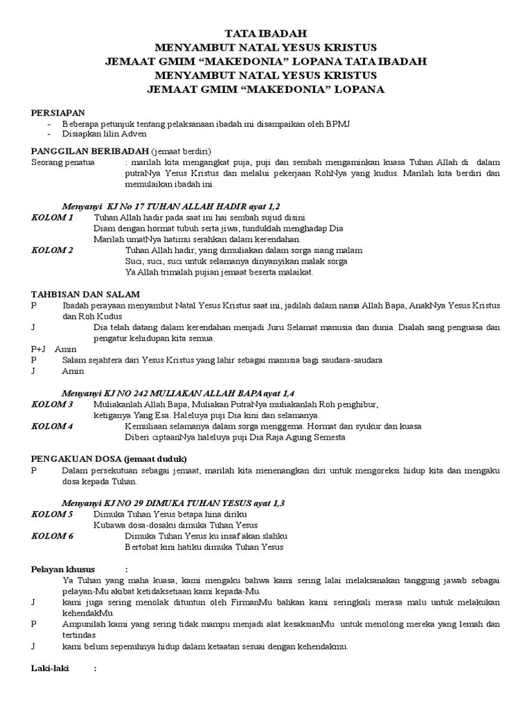 Kapolres situmorang berharap kepada seluruh . Documents similar to tata ibada. Liturgi natal terbaru tata ibadah natal lirik lagu natal. Tata ibadah natal pemuda gkii : Tata ibadah natal pemuda gkii / tata ibadah natal pemuda gkii / contoh susunan acara natal.